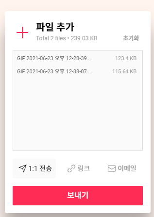 보낼 파일들을 선택한 뒤, 6자리 숫자키 혹은 링크를 이용해서 다른 사람들이 내가 공유한 파일 들을 다운로드할 수 있다.
