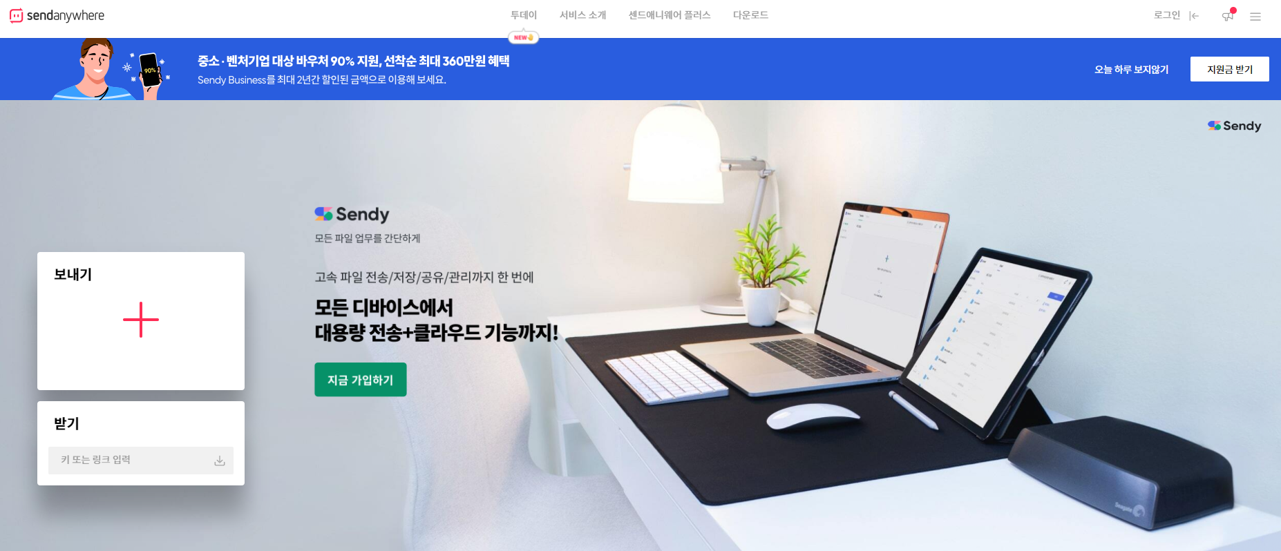 먼저 PC로 다운을 받기 위해서는 센드애니웨어 홈페이지에 접속한다.
