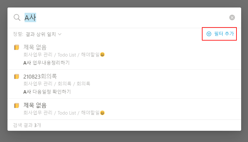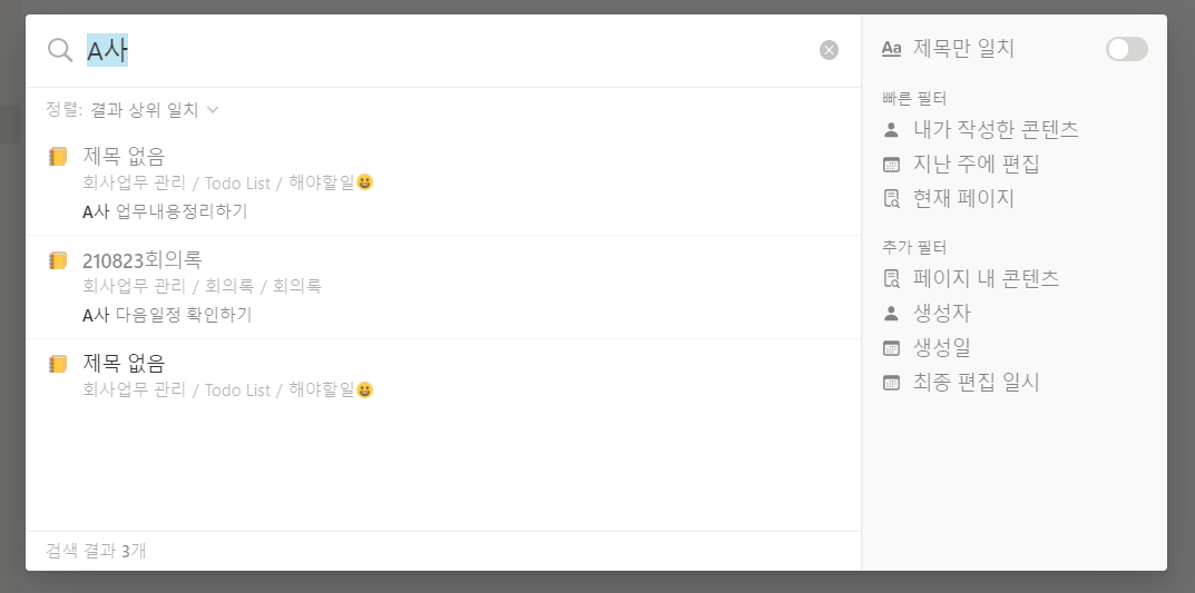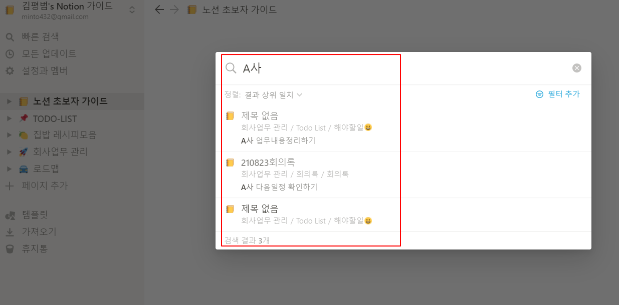 이런 경우 노션에서 제공하는 검색을 이용해서 찾아보도록 하자