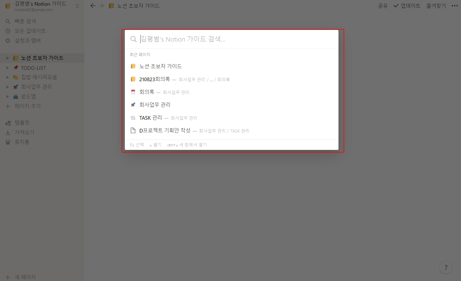 🔎노션 빠른 검색