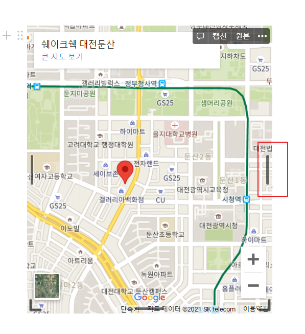임베드가 완료되면 해당 블록이 구글 지도 형태로 변경된 것을 확인할 수 있다.