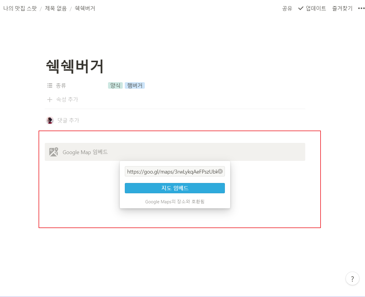 노션에 구글 지도 임베드 하기