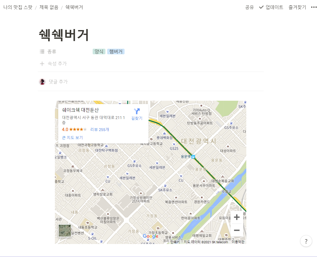 다른 메모어플과 다르게 노션은 지도도 손쉽게 넣을 수 있다.