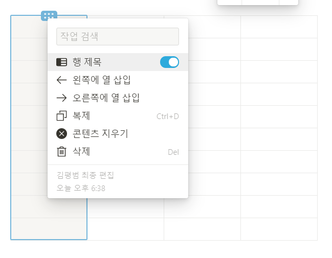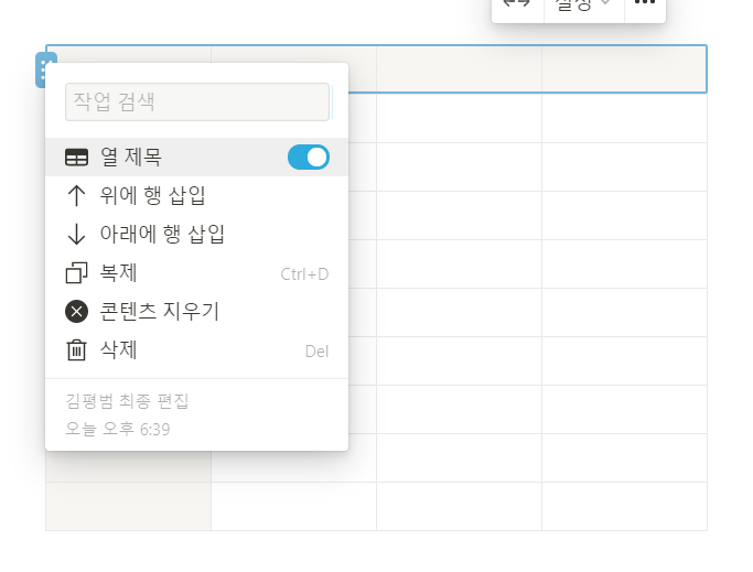 가장 기본적인 행열은 가장 끝쪽에 마우스를 올리면 + 버튼이 생겨서 해당 버튼을 클릭하면