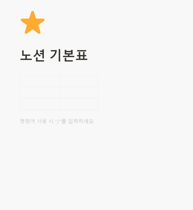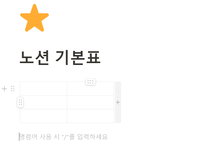 /표를 입력하면 단순한 표를 페이지에 추가할 수 있다.