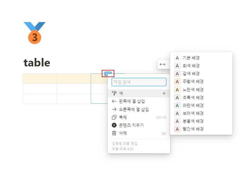 노션 기본 표에 배경색상 추가하기