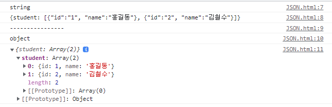 let jsonExample = `{"student": [{"id":"1", "name":"홍길동"}, {"id":"2", "name":"김철수"}]}`;