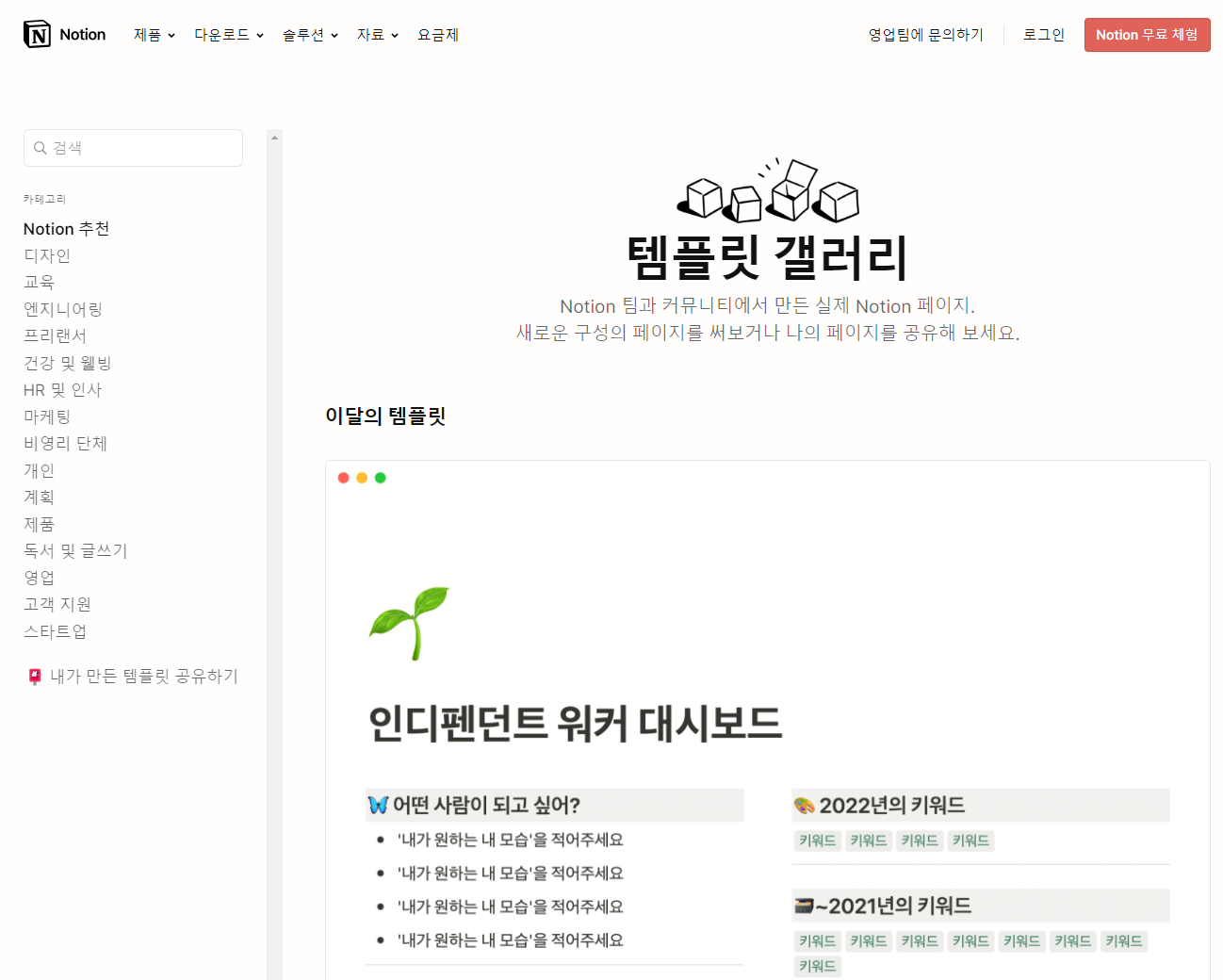 윗 링크를 이용하면 노션 템플릿 갤러리를 들어갈 수 있다.