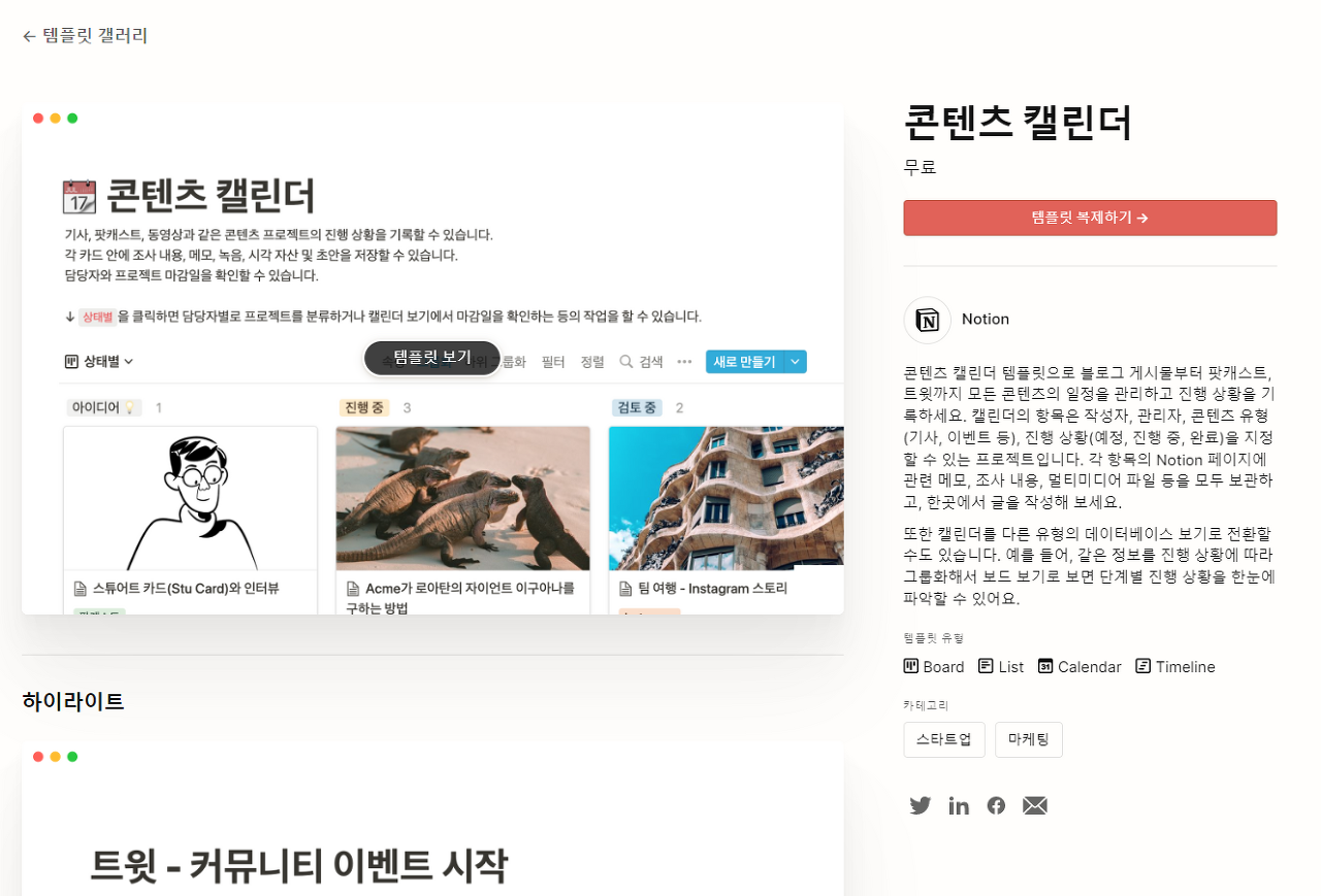 Notion 팀이 큐레이션한 커뮤니티 템플릿. 업무와 생활을 효과적으로 관리하고, Notion을 사용하는 새롭고 창의적인 방법을 발견하세요.