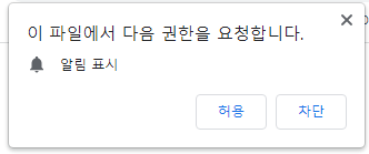 위 코드를 확인하면 현재 사이트에 Notification을 허용했는지 아닌지를 체크할 수 있다.