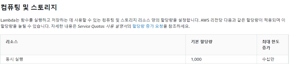 람다는 기본적으로 1000개의 함수가 동시에 실행될 수 있도록 제한되었다.