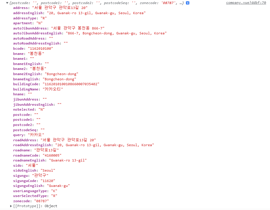 addressEnglish에는 영어 주소도 들어와 있다.