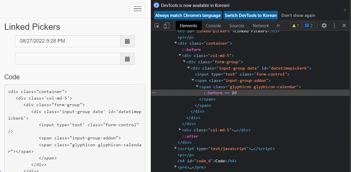 🤨vue bootstrap datepicker 개발자 도구 문제