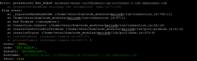 EAI_AGAIN은 DNS 조회시간 초과 오류이다.