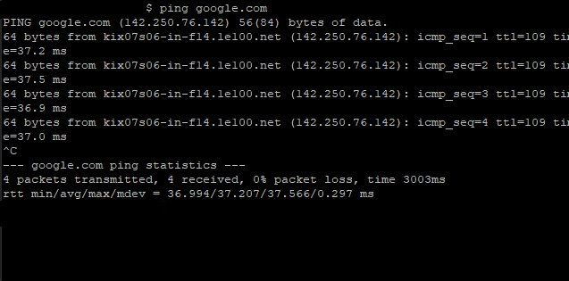 DNS가 문제라고 하니, ping으로 google.com을 호출해봤는데