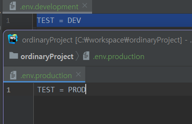 TEST라는 변수를. env 파일 중 배포와 개발 파일에 각각 다른 변수명을 넣어준다.
