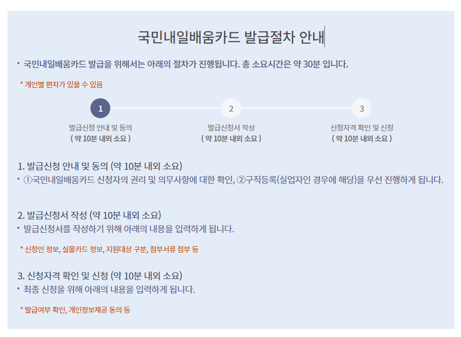 내일배움카드 신청 절차는 나름 까다로워서 시간을 잡고 진행해주도록 하자.