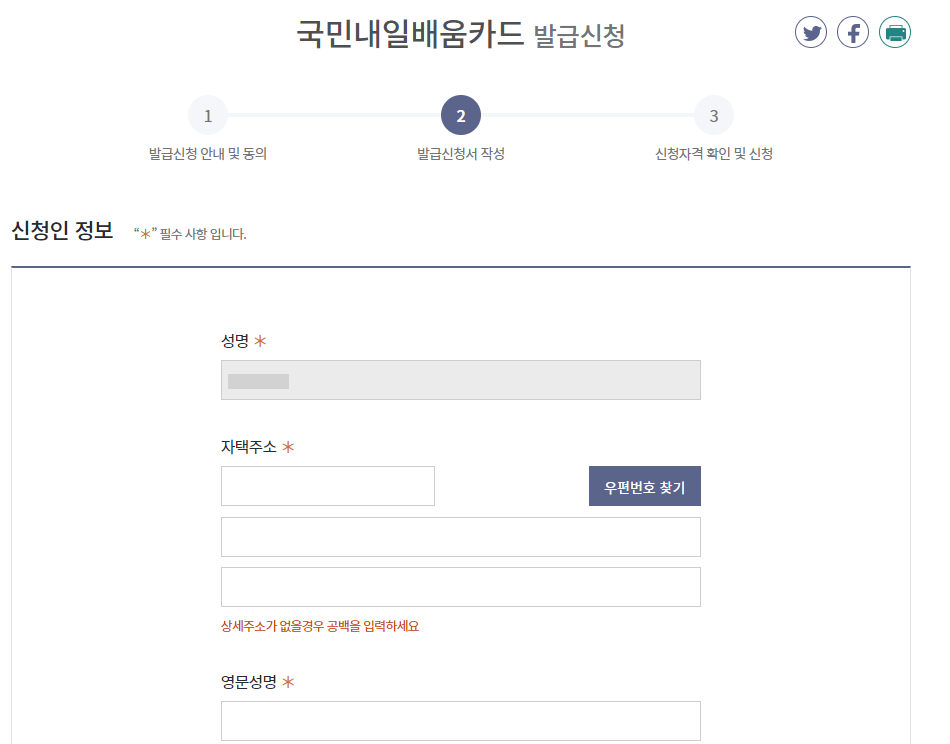 내일배움카드 2단계에서는 신청인 정보를 입력합니다.