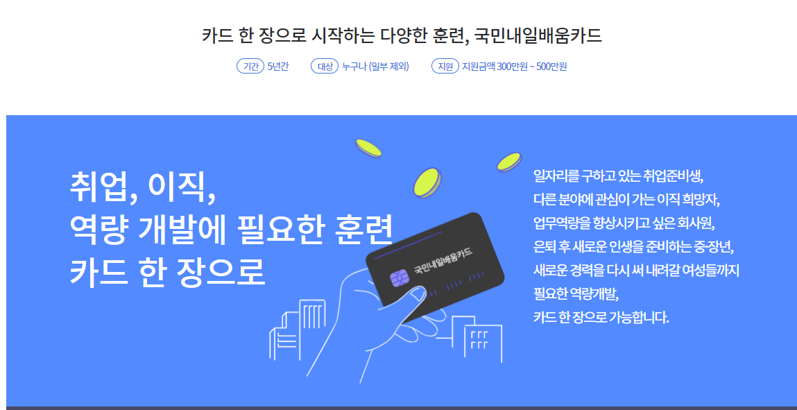 내일배움카드는 취업 및 창업을 희망하는 분들에게 지원되는 카드로