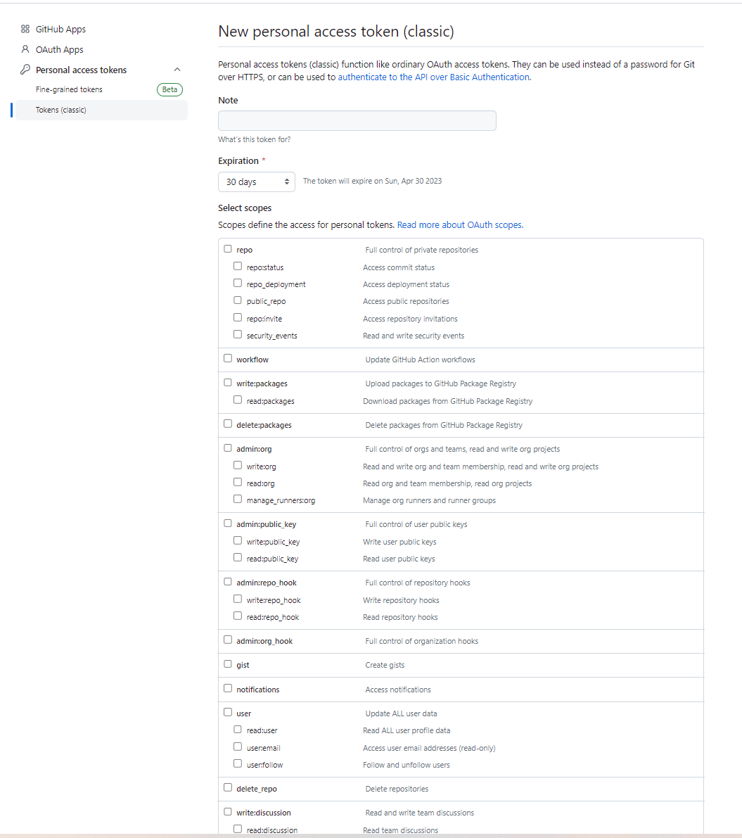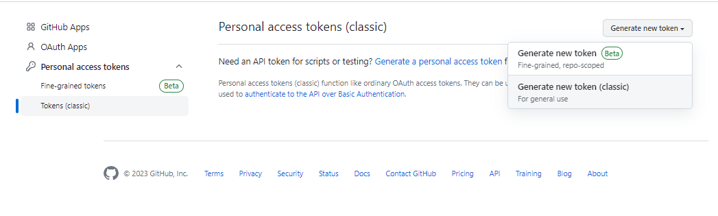 Personal access tokens > token Classic 메뉴에 접속해 준다.