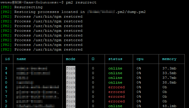 pm2 resurrect