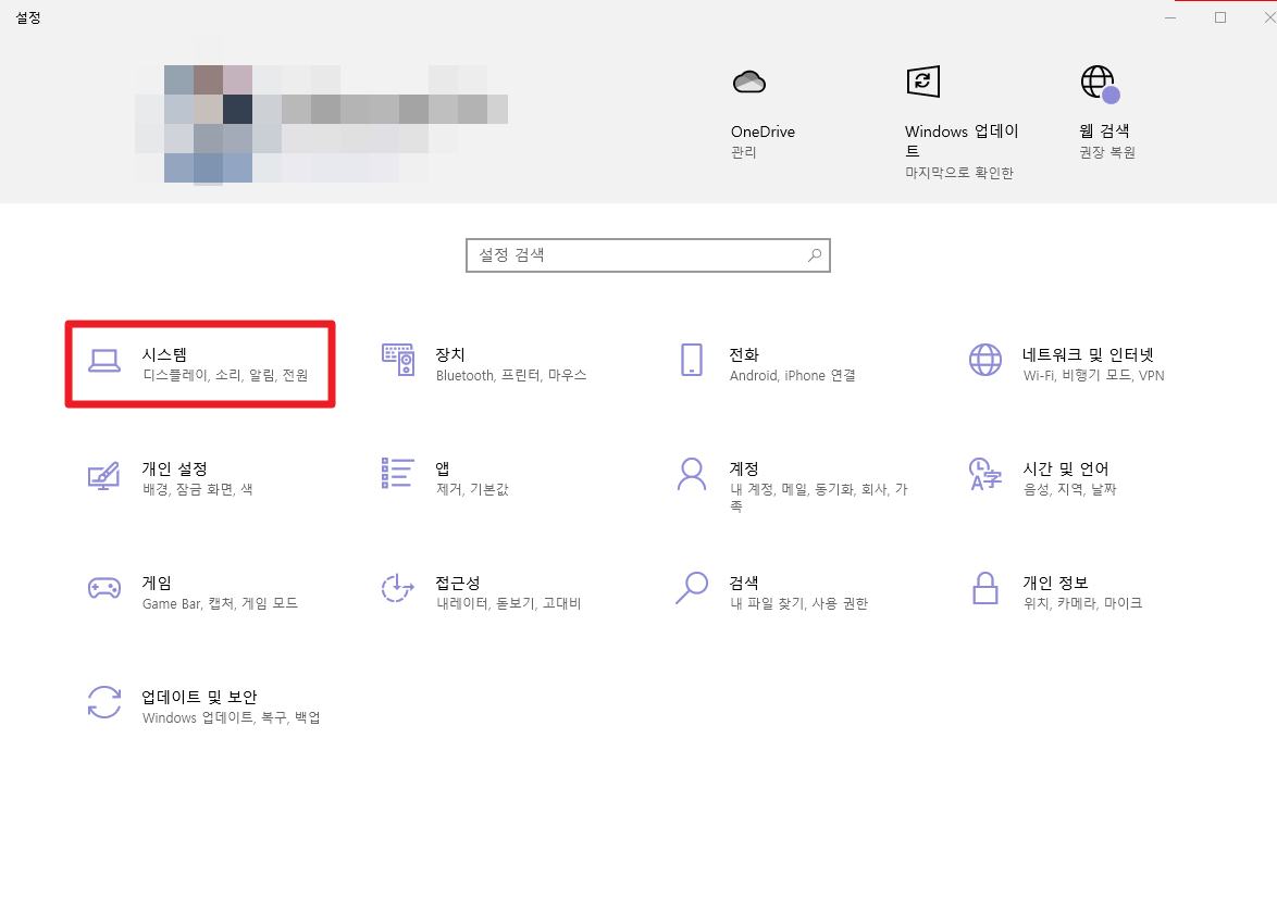 윈도우 설정에에 들어가면 시스템 메뉴에 들어간다.
