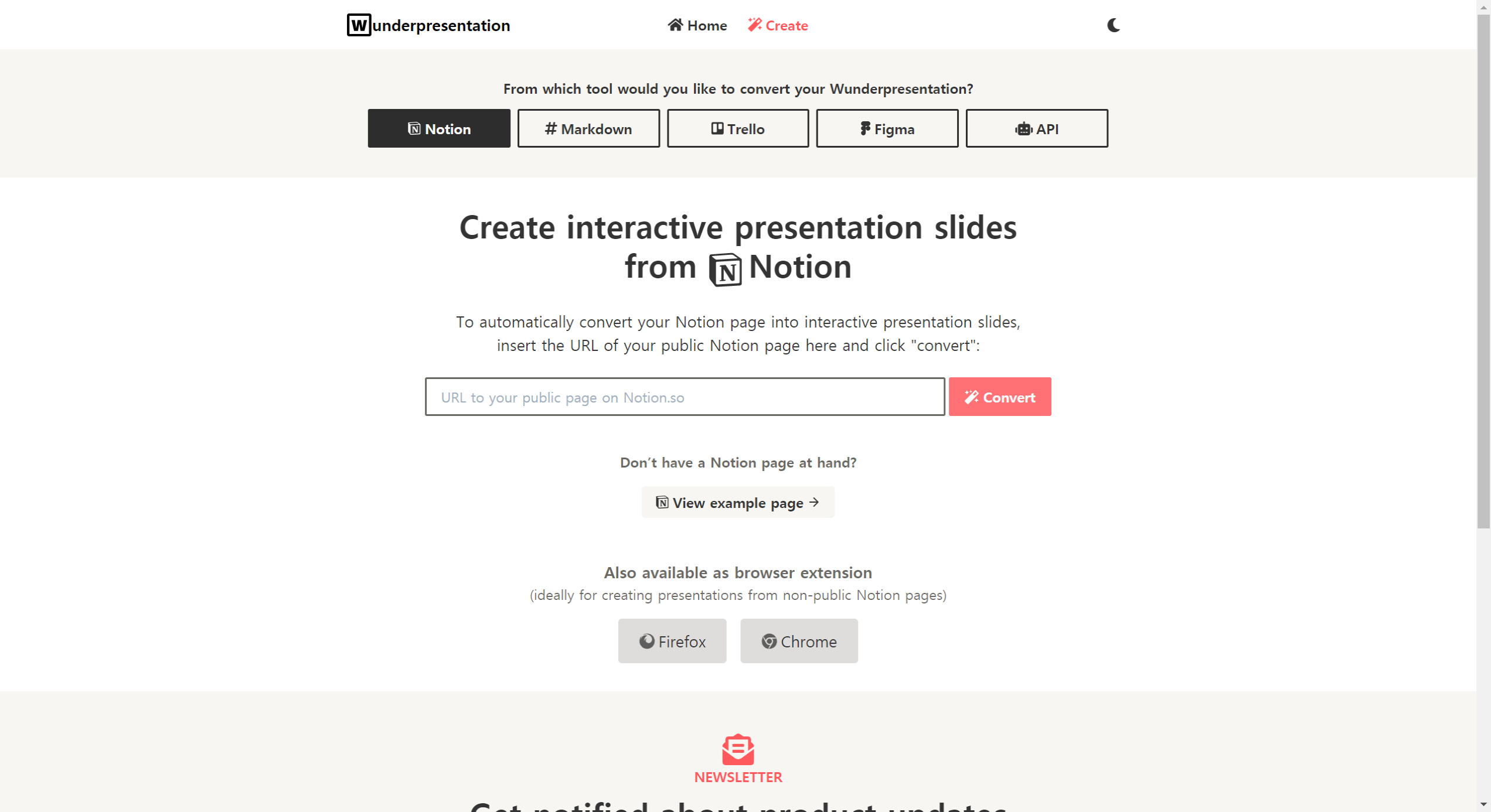 Wunderpresentation converts your Notion pages into interactive presentation slides.
