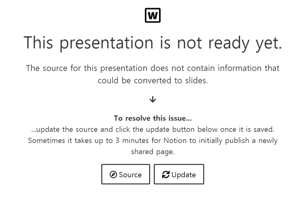 비공개 노션페이지의 경우 프레젠테이션으로 변경이 안된다.