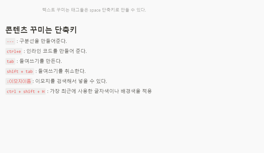 노션을 Drag 했을 때 파란색으로 표시되는 모든 것들을 블록이라고 부른다.
