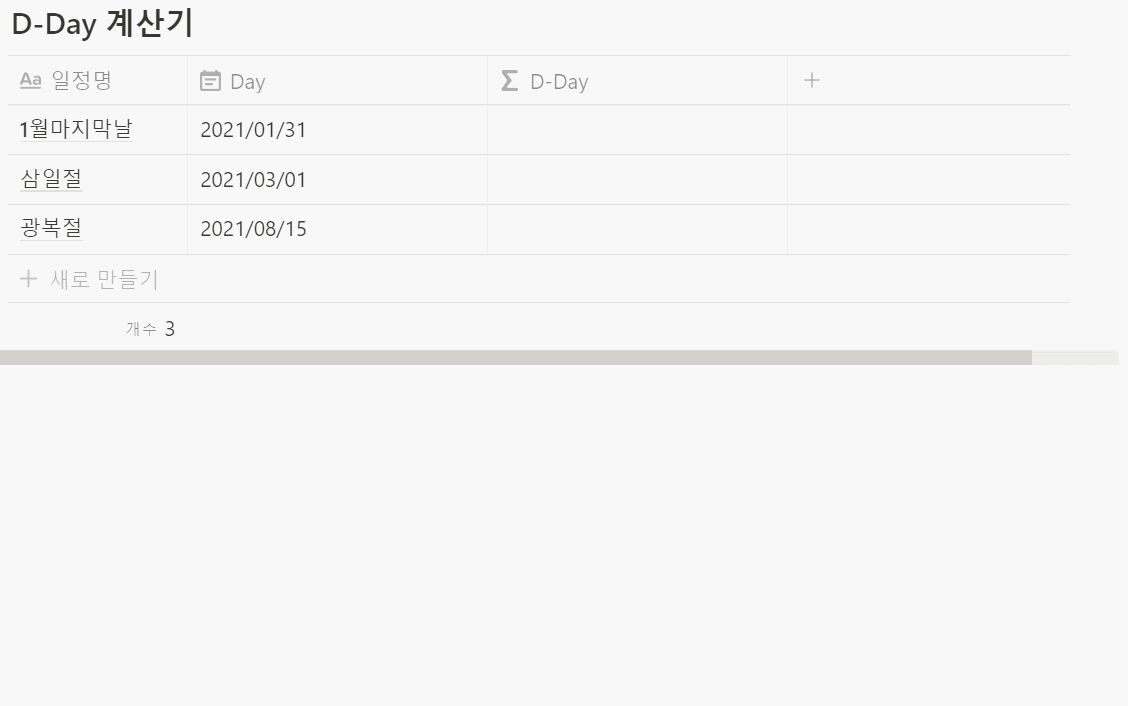 Day 속성에 적힌 날까지 얼마나 남았는지를 표시하는 D-Day를 만들 수 있다.