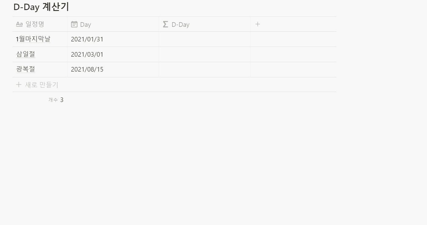 Day 속성에 적힌 날까지 얼마나 남았는지를 표시하는 D-Day를 만들 수 있다.