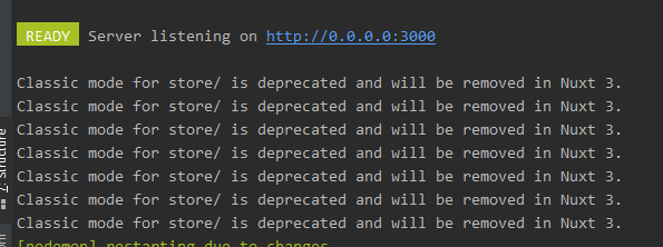어느 날 Nuxt로 만든 프로젝트에서 run server를 돌릴 때마다 이상한 경고문이 발생하기 시작했다.