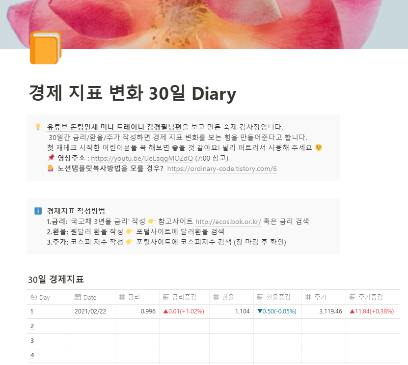 📝노션으로 만든 경제 지표 변화 30일 Diary 템플릿 공유