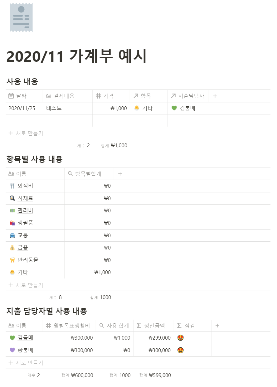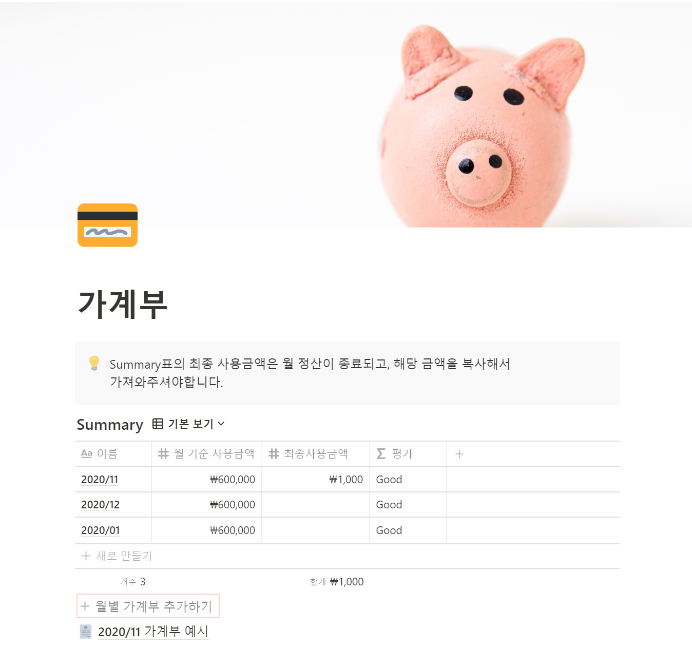 이전 포스팅에서 정의한 가계부 템플릿이 완성돼서 공유해보기로 한다.