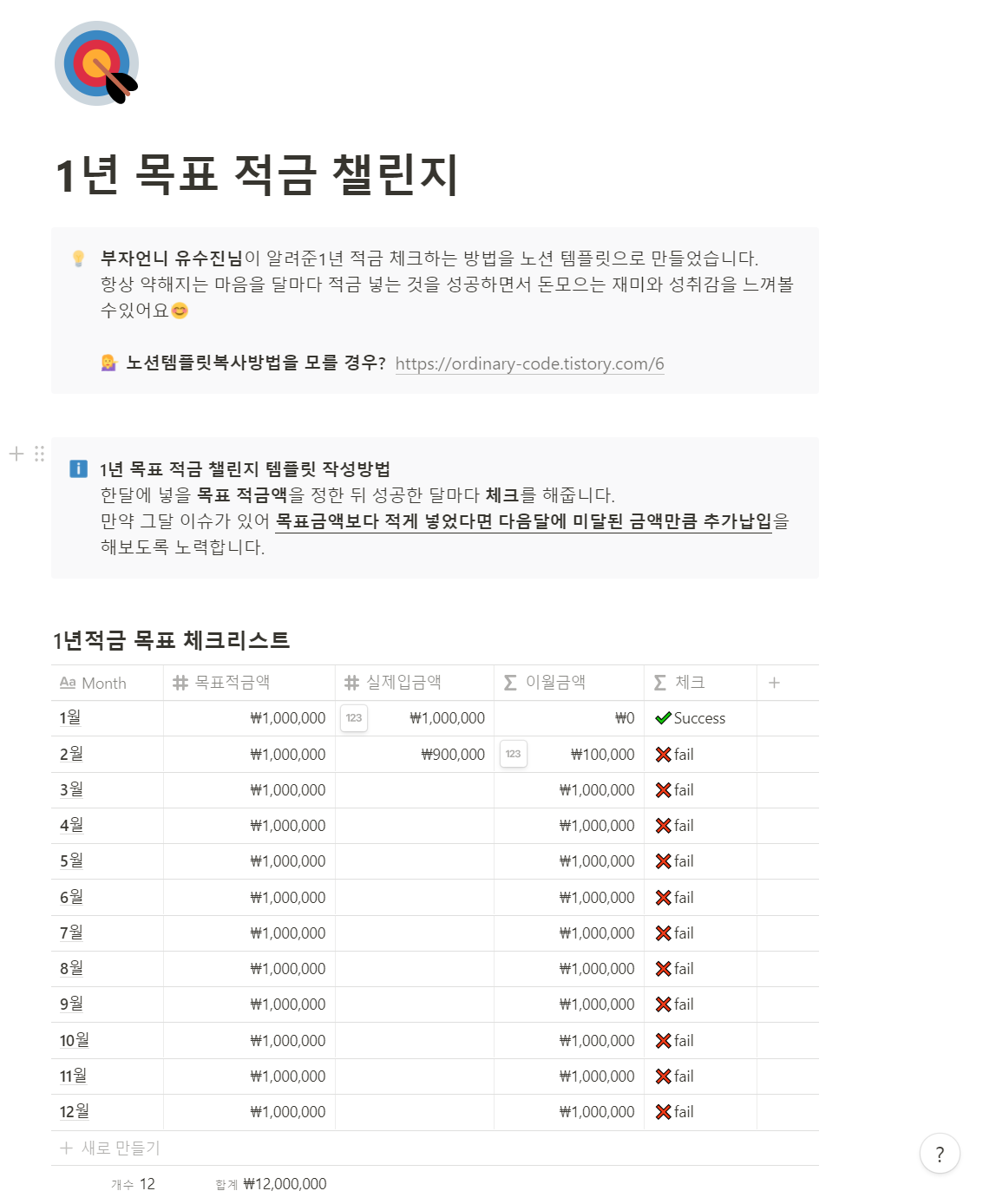 📝노션으로 만든 1년 목표 적금 챌린지 템플릿 공유