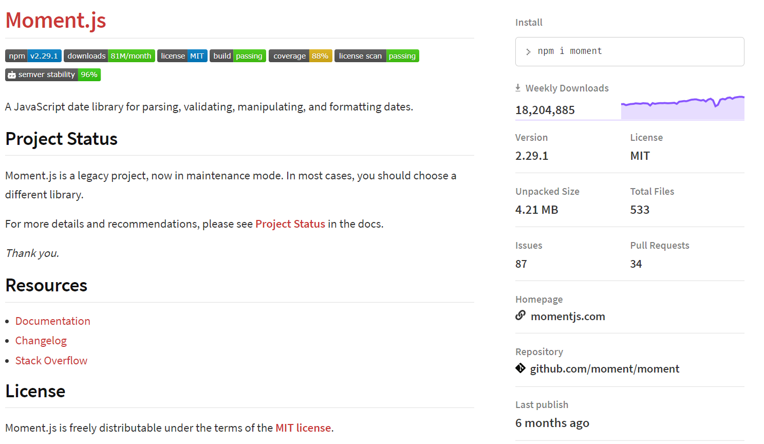 moment를 이제 더 이상의 업데이트가 없다고 발표를 했고,