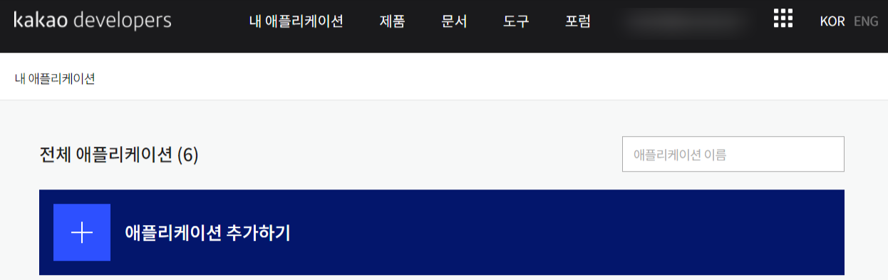 애플리케이션을 추가해줘야 내 사이트를 인증받을 수 있는 앱 키를 발급받을 수 있다.