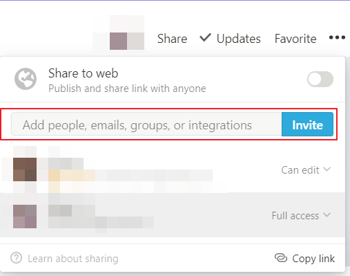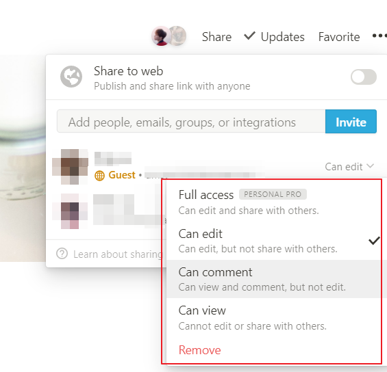 - Full access : 공유된 페이지를 모두 수정할 수 있고 다른 사람한테 페이지 공유가 가능하다.