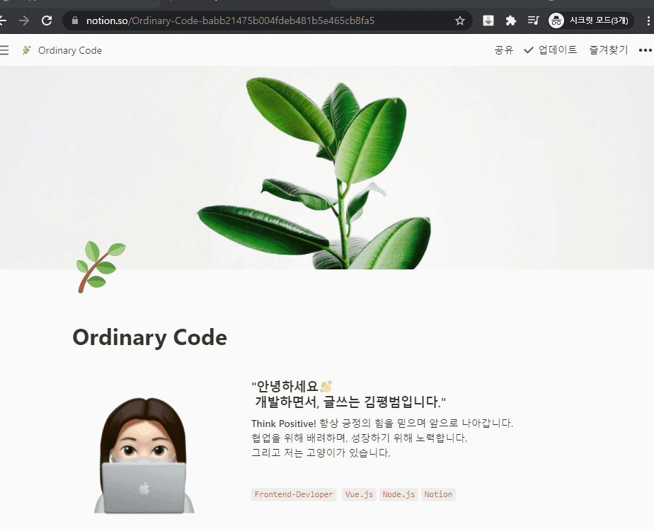 이렇게 까지 커스텀이 되면 나의 노션이 훌륭한 홈페이지로 되는 것이다.