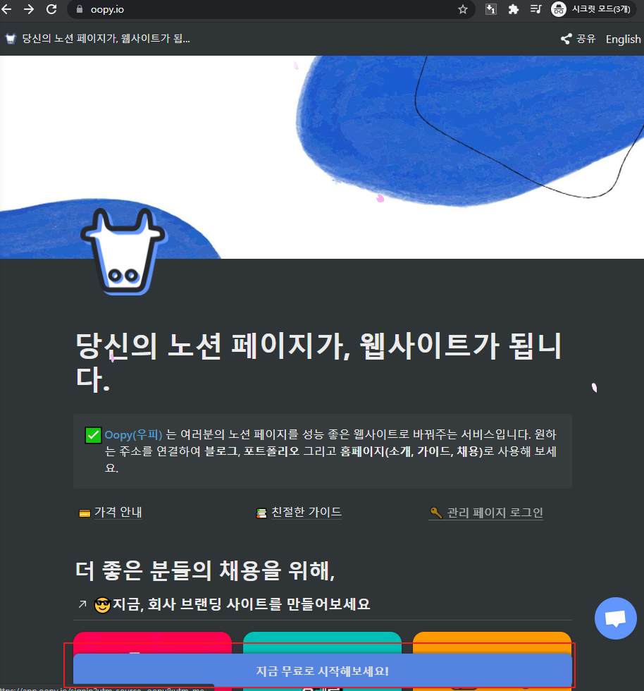 Oopy(우피) 는 여러분의 노션 페이지를 성능 좋은 웹사이트로 바꿔주는 서비스입니다. 원하는 주소를 연결하여 블로그, 포트폴리오 그리고 홈페이지(소개, 가이드, 채용)로 사용해 보세요.