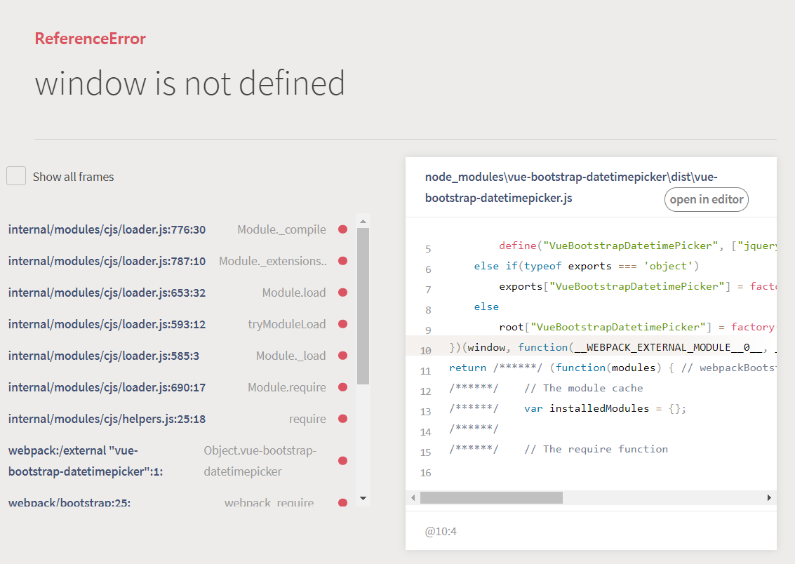 이는 Nuxt 서버가 돌면서 서버 측에서 랜더링을 할당 객체를 찾을 수 없어서 나는 문제이다.
