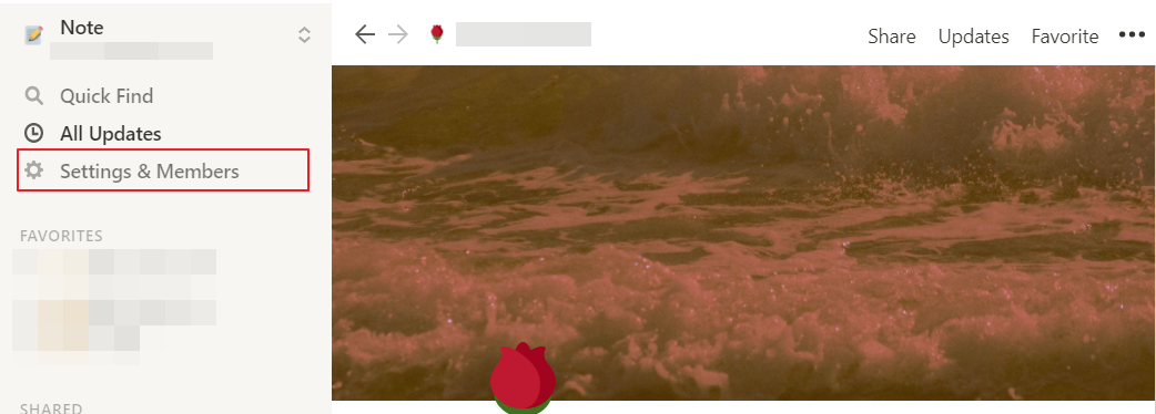 왼쪽 메뉴의 Settings & Members에서 노션 관련된 설정을 변경할 수 있다.