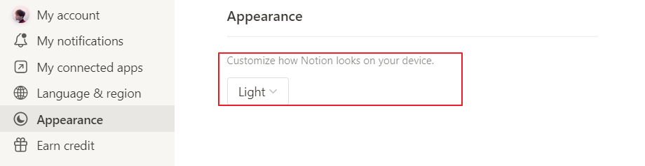 노션 Setting&Members에 Appearance로 들어가면 노션 화면 설정을 변경할 수 있다.