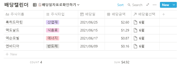 📆노션으로 만든 배당 캘린더