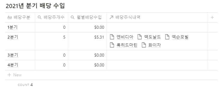 만약 월별 수입이 아니라 분기별로 배당수입을 관리도 가능하다