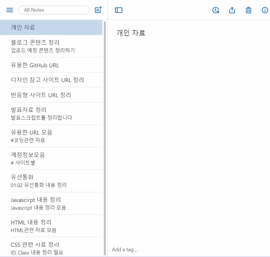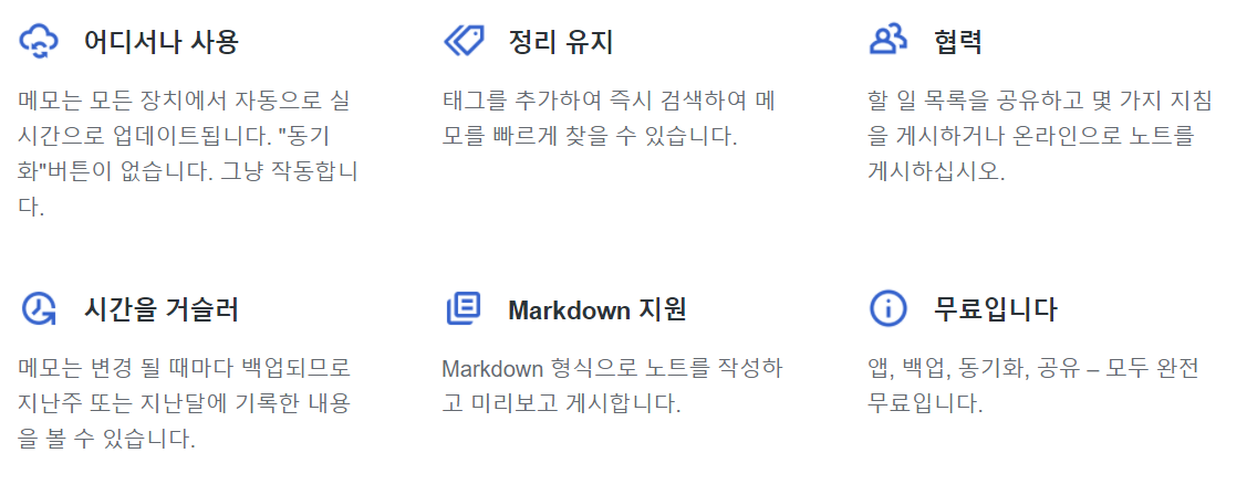 노션보다 좀 더 가벼운 노트를 쓸 때 이용하기 좋다.
