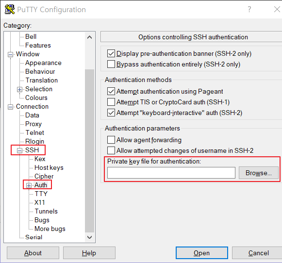 3. Private key file for authentication에서 Browse를 눌러서 가지고 있는 PPK파일을 선택 한 뒤 Open을 클릭하면 연결된다.
