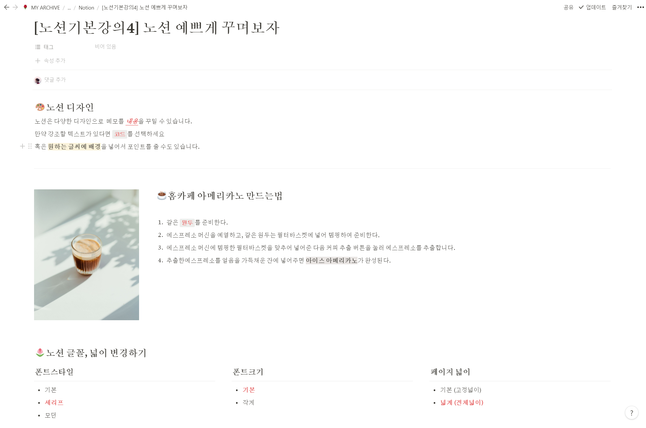 노션 꾸미기를 해보는 것도 또 하나의 재미일 것이다.